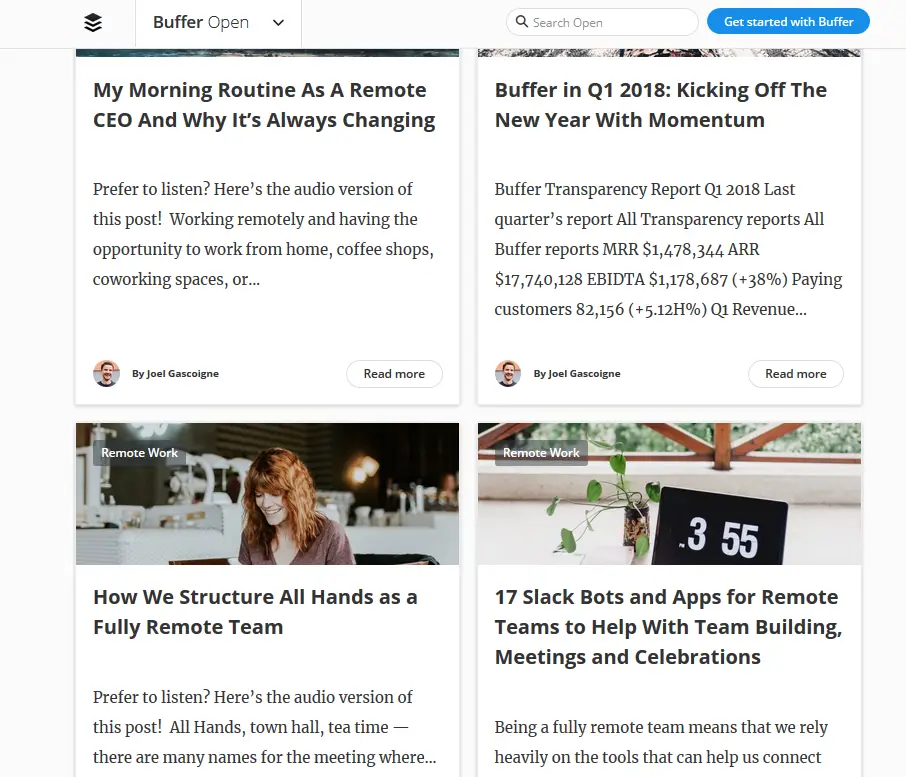 Buffer has a section on its blog called “Buffer Open” that features transparent plans, stories, and happenings. This makes the brand more approachable to its targets.